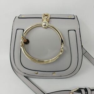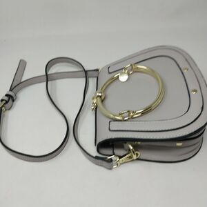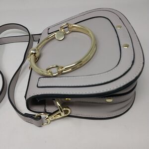 YOOME tan crossbody bag. Approximate measurements are 8" x 7" x 3'. Strap is approximately 40" and is a little adjustable with a buckle. Also Strap comes off and the metal rings become the handle. New Condition