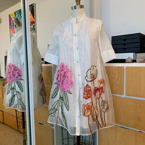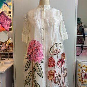 YOOX WHITE FLOWY BUTTON UP FLORAL MINI DRESS - SIZE SMALL
