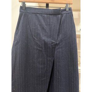 YOOX Weili Zheng Metallic pin-stripe Wool Navy Pencil Maxi Skirt Size Small