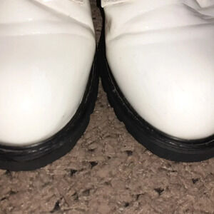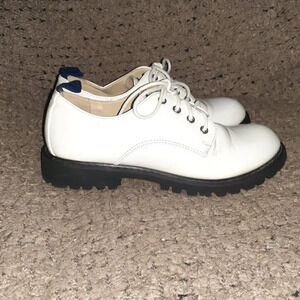 YOSUKE-White Faux Patent Lace-Up Oxfords-Sz 24.5/8-Very Good