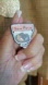 Encouraging cutie made of painted enamel, with classic tie tack back and rubber stopper.
