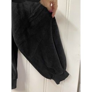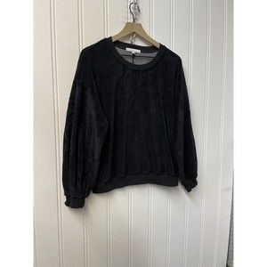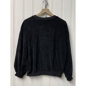 YOUNG FABULOUS & BROKE Black Velour Balloon Sleeve Crewneck Sweater Size Medium
