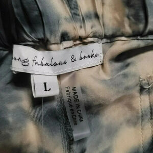 YOUNG FABULOUS & BROKE SIZE L JANELLE ANKLE TIE DYE CARGO POCKETS PANTS Women’s. This is super cute Elastic waistband with front zip closure side seam back and side cargo pockets cuff ties lightweight slinky satin fabric.