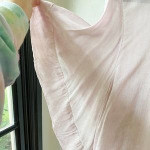 100% rayon absolutely stunning button up blouse! This top is gorgeous in person. Super light weight and perfect for spring and summer. So soft and flowy with gorgeous buttons.