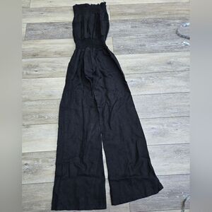 YOUNG FABULOUS & BROKE black Linen Jumpsuit Wide Leg Tube Top Vintage Style sm