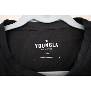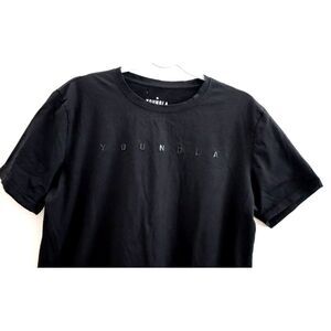 YOUNGLA 459 YLA2351 Men's Sz L Black Spellout Monochrome Fitted Workout T-Shirt