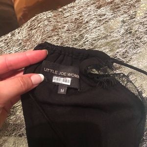 Sheer center front insert and paneled skirt with chantilly lace, silk and a velvet trim. The dress features a beautiful open back and tie at the neck with gunmetal toggles. Thin straps complete the piece, with a relaxed fit in the body, elasticated waistband and flirty skirt. Silk lurex, velvet ribbon and chantilly lace trim, sheer center front insert, open back, elasticated waistband, paneled skirt, dry clean only.