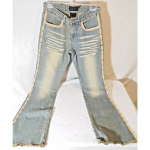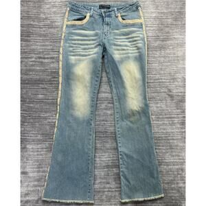 YOYO Jeans Womens Size 9 Blue Y2k Flare Boho Studded Trim Side Slit NWOT Rare