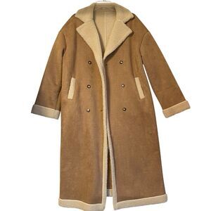 YOZY Faux Shearling Long Coat M Tan Sherpa Teddy Penny Lane Western Yellowstone