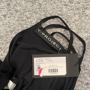 Black Y/Project Crossback Top. Ultra sexy! Fitted, semi-sheer, crew neckline, crossover cutout accented straps at back. Tonal stitching throughout. Size L, but I personally feel would fit a S or M better. Never worn! Tags included!