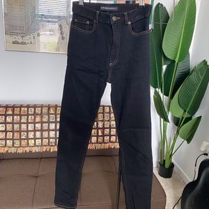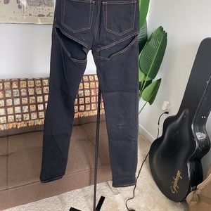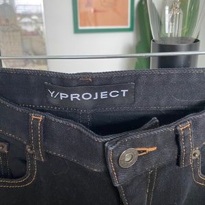 Black cotton blend back cut-out jeans from Y/PROJECT featuring a high rise, a five pocket design, a button and zip fly, a waistband with belt loops and a cut out detail. size small