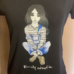 Like new condition. No size tag but fits like a small. Please see measurements. Cute girl with overalls and gold sequin shoes.