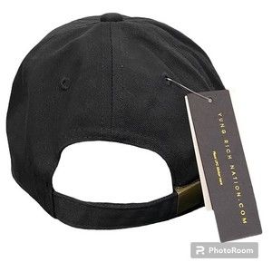 Yung Rich Nation Migos adjustable black hat with embroidered roses.