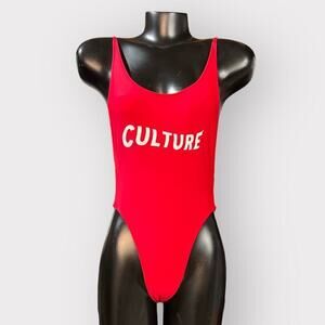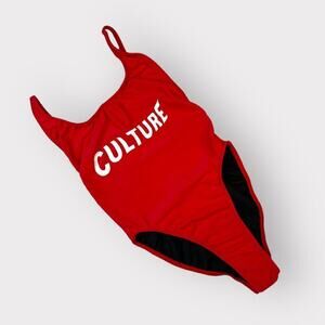 YRN NEW Open Back High Thigh Cheeky One-Piece CULTURE Swimsuit XS Red Lifeguard