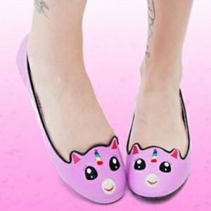 Charming lavender flats with unicorn face. Features playful horn and ears. Adds whimsy to any look.