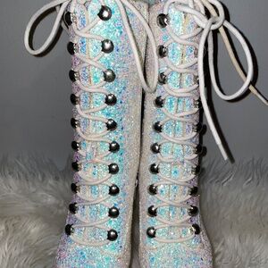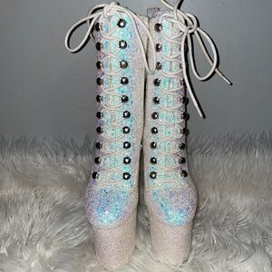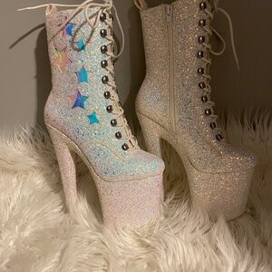 YRU MYA STAR WHITE GLITTER PLATFORM Stripper Dancewear BOOTS HEELS XTRA Size 5