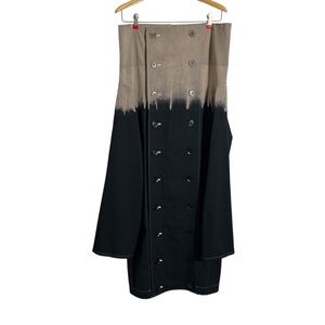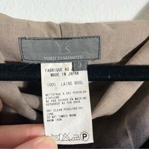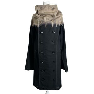 Vintage Y'S BY YOHJI YAMAMOTO Y2K Funnel Neck Wool Double-Breasted Dip-Dyed Long Coat Jacket featuring a striking ombre dip-dye effect that fades from warm taupe into charcoal black. 100% wool and made in Japan, this piece embodies Yohji’s signature minimalist, architectural aesthetic. From late 90s to early 2000s! Dramatic oversized funnel and/or shawl collar that can be worn standing up or folded down. Double-breasted button front, long sleeves, subtle contrast stitching, and small, but functional pockets complete the look. Structured yet fluid. A timeless, collectible designer piece with unmistakable avant-garde style. Size 3 = Medium (US 6-8)