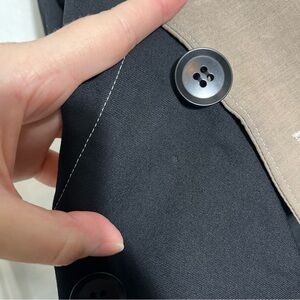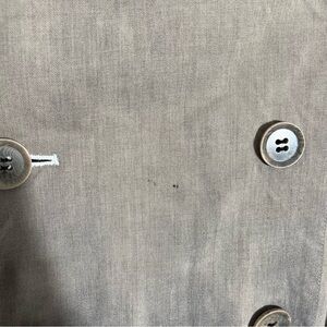 Flaws: A few small holes on top layer that are completely covered when buttoned. One tiny mark on tan section. Still in amazing shape!