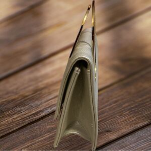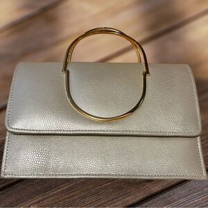 Y&S Ivory with Gold Tone Chain Shoulder Cross Body Clutch Bag