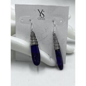 YS gems Purple Copper Turquoise Sterling Silver Teardrop Wrapped artisan Earring