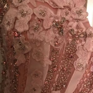 PINK STRAPLESS BEADED AND APPLIED FLOWERS MERMAID GOWN