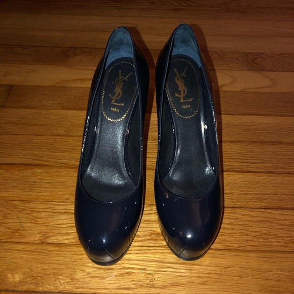 Beautiful Navy Patent YSL barely worn. No flaws & does not come with bags or box.