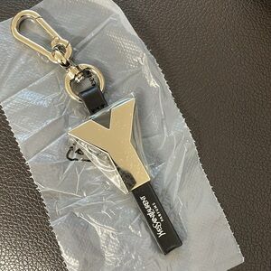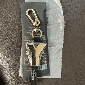 Yves Saint Lauren Limited Edition Y Keychain 5 1/2” total length Large YSL Y Logo in silver-toned metal Yves Saint Lauren Parfums imprinted on black strap Secure carabiner hook on swivel mount in silver-tone metal YSL packaging VIP Gift made exclusively for YSL fragrances BRAND NEW IN ORIGINAL PACKAGING