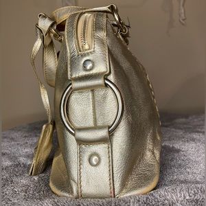Tags: YSL, Yves Saint Laurent, Tote, gold, muse, YSL muse, handbag, fixer upper, authentic, YVES SAINT LAURENT