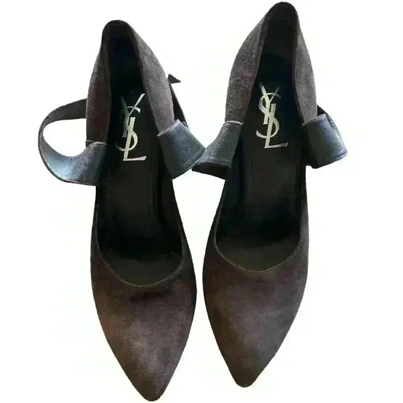 YSL Authentic Vintage Suede Ankle-Strap Platform Pumps