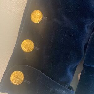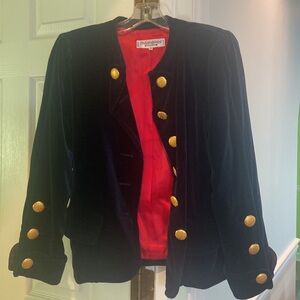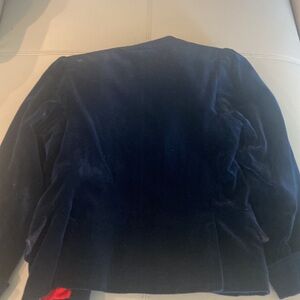 Gorgeous authentic vintage YSL Made in Pairs blue velvet with bright gold button up and red satin lining. I bought this in Pairs at YSL . Pictures can’t capture the beauty of this iconic rare Yves made piece. Can be worn as top or jacket/coat. Measurements in pictures🇫🇷🐇😊