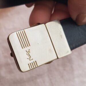 YSL Bla k Leather Belt with Gold Bu kle