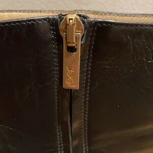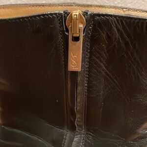 YSL Black Leather Almond Toe Heeled Ankle Boot