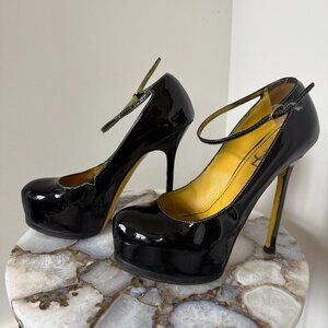 YSL Black Patent Leather Ankle Strap Pumps 105mm - Used - Size 37.5