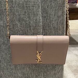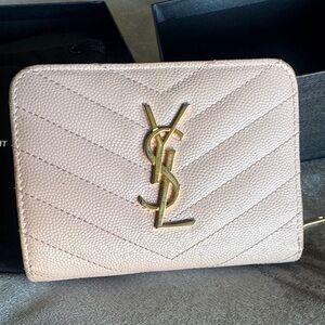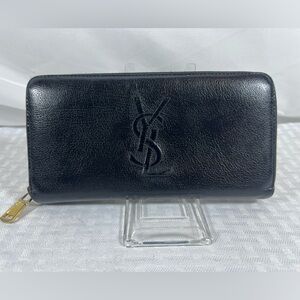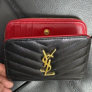 Elegant brown leather YSL bifold wallet with embossed logo. 8 card slots. 3 bill slots.