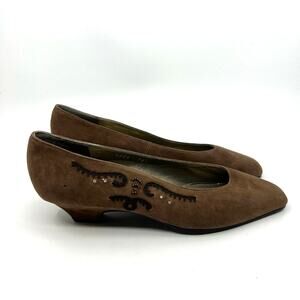 YSL Brown Suede Kitten Heel Pumps Women's 6.5 US NEW