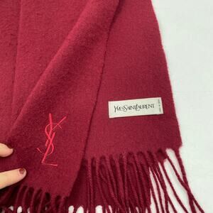 YSL Burgundy Wine Fringe Wool & Cashmere Scarf