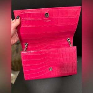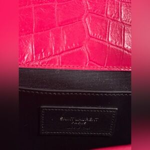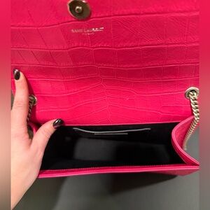 YSL Calfskin Croc Embossed Medium Classic Monogram Kate Tassel Fuchsia