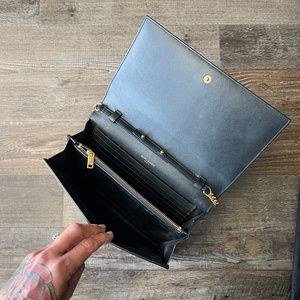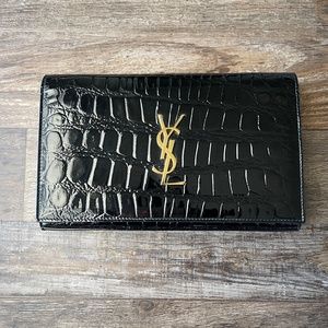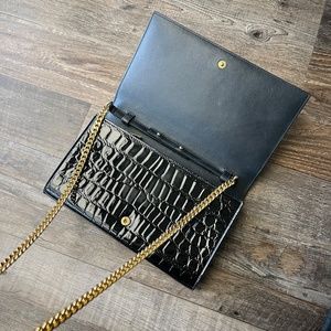 Saint Laurent large wallet on chain in croc-embossed calf leather