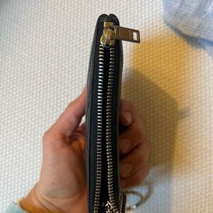 Gently used, in great condition. Minor signs of wear on edges as pictured. See serial number for authenticity. Smooth, black leather with silver accents.