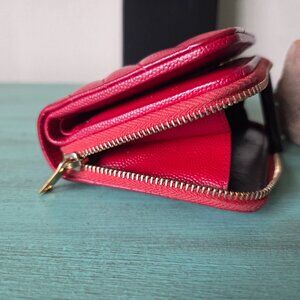 Absolutely striking piece in a fiery red with 6 card slots, billfold and a back coin pouch.