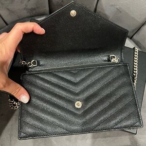 CASSANDRE MATELASSÉ ENVELOPE CHAIN WALLET IN CAVIAR GRAIN DE POUDRE EMBOSSED LEATHER