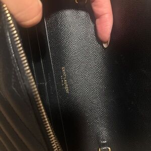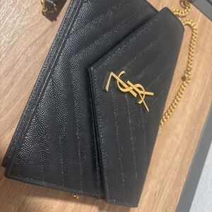 Black YSL Cassandre envelope chain wallet in good condition! This is the smaller version- DIMENSIONS: 19 X 12.5 X 3.5 CM / 7.5" X 5" X 1.4"