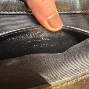Authentic YSL / Laurent metallic calfskin medium college satchel with gold hardware.