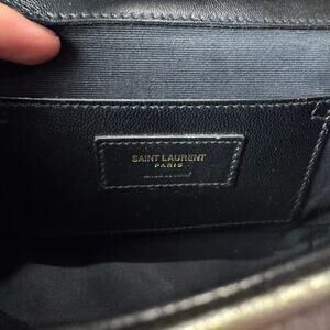 Authentic YSL / Laurent metallic calfskin medium college satchel with gold hardware.