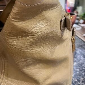 Please see pictures the bag has a scratch in the front and some fading on the sides of the bag. Other than that it looks astonish