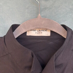 YSL EUC Yves Saint Laurent Rive Gauche Dark Purple Raw Hem Silk Blouse EU 36