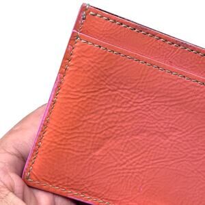 Beautiful patent leather Cardholder Wallet finished in beautiful orange color and Classic logo embroidered on the front.