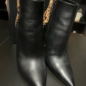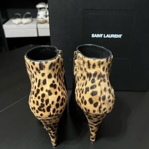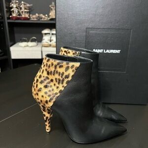 YSL Kiki Leopard-print Calf Hair And Leather Ankle Boots In Black 37.5