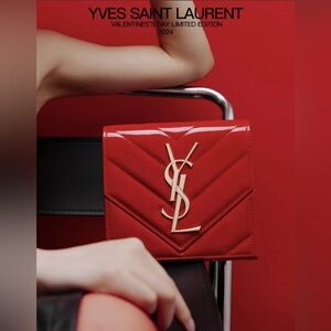 YSL Large Red Cosmetic Clutch with gold hardware. Part of 2024 Valentine’s Day VIP Gift. Can easily be converted into a shoulder or crossbody bag. New.