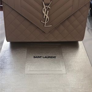 YSL MEDIUM ENVELOPE IN QUILTED GRAIN DE POUDRE LEATHER IN GREAT CONDITION.